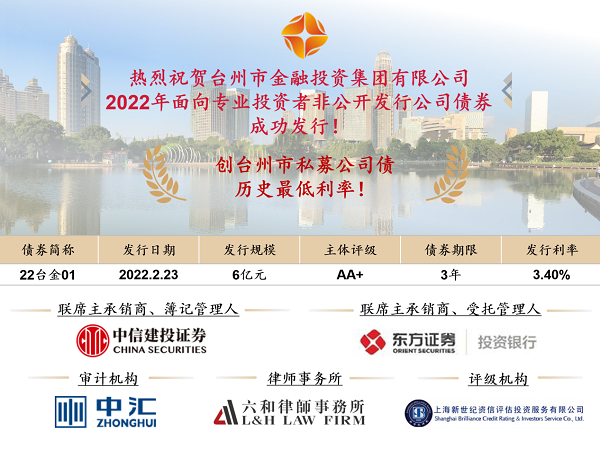 開年之際,市金投集團于資本市場內(nèi)再嘗試再出發(fā)!集團計劃財務部積極響應國家、省、市政策號召與集團融資工作部署,于2月23日成功面向?qū)I(yè)投資者非公開發(fā)行公司債券(私募公司債)6億元,創(chuàng)臺州市私募公司債歷史最低利率。