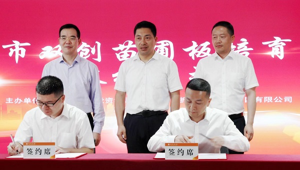 儀式上,臺(tái)州金投與浙股集團(tuán)簽署了共同建設(shè)苗圃板的協(xié)議;陳慶中、管順正共同為臺(tái)州市雙創(chuàng)苗圃板培育基地揭牌。