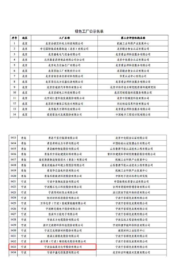 工信部日前公示2023年度國家綠色制造名單,寧波金海晨光化學(xué)股份有限公司(以下簡稱:金海晨光)入選國家級“綠色工廠”公示名單。綠色制造體系是針對符合科學(xué)“綠色發(fā)展”倡導(dǎo)的企業(yè)給出的一種認(rèn)定,目的是深入實施綠色制造工程,加快構(gòu)建綠色制造體系,發(fā)揮綠色制造先進典型的示范帶動作用,從而實現(xiàn)產(chǎn)業(yè)全面升級和優(yōu)化。而國家級“綠色工廠”則是綠色發(fā)展榮譽的“天花板”,由縣、市、省各級工信部門按照“優(yōu)中選優(yōu)、寧缺毋濫”的原則層層選拔推薦。