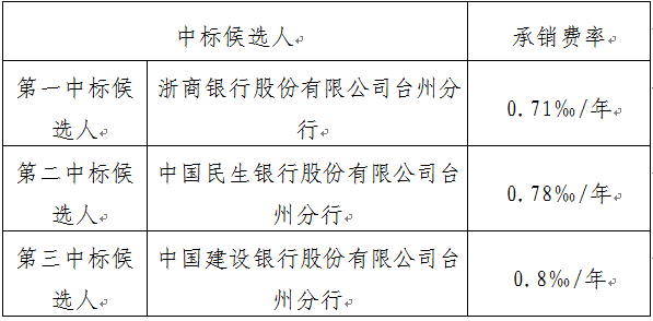 臺州市金融投資集團有限公司超短期融資券發(fā)行承銷商招標(非政府采購)項目,經(jīng)評標委員會評審,結(jié)果公示如下: