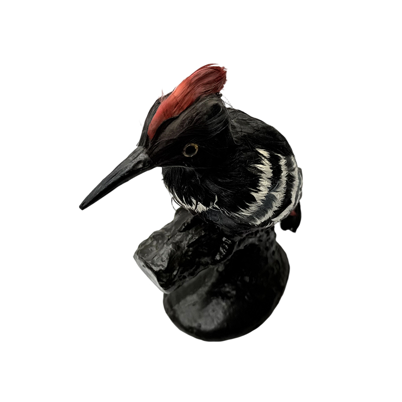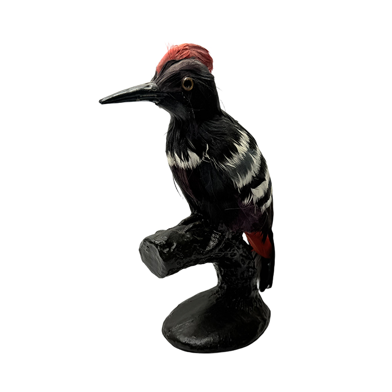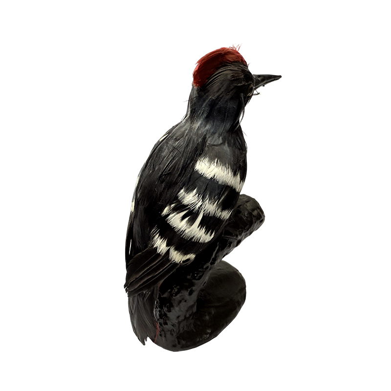 The product material is made of simulated feathers, referring to the real woodpecker, including eyes, beak, claws, etc.