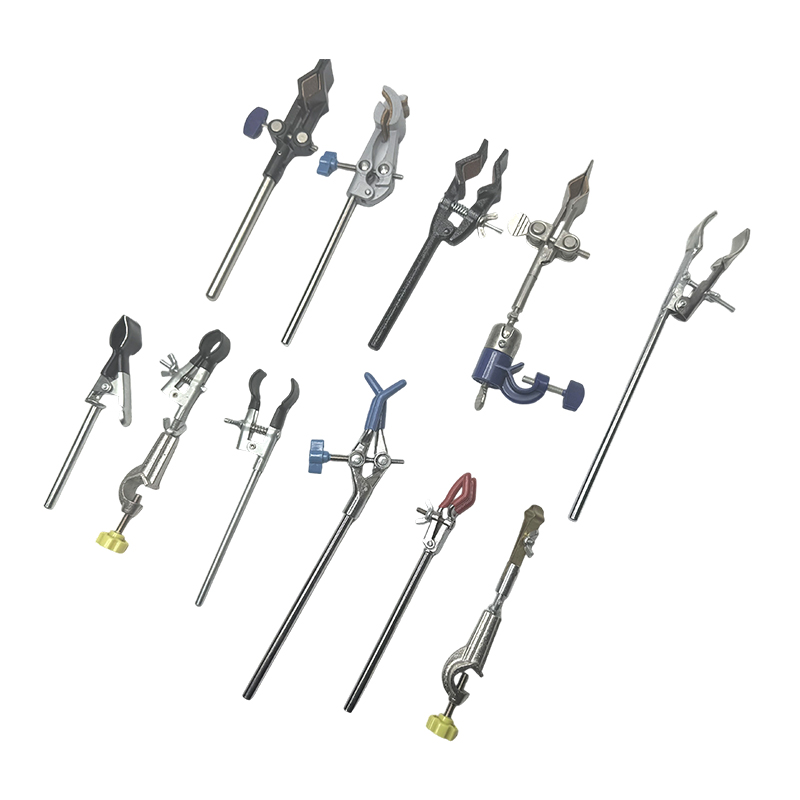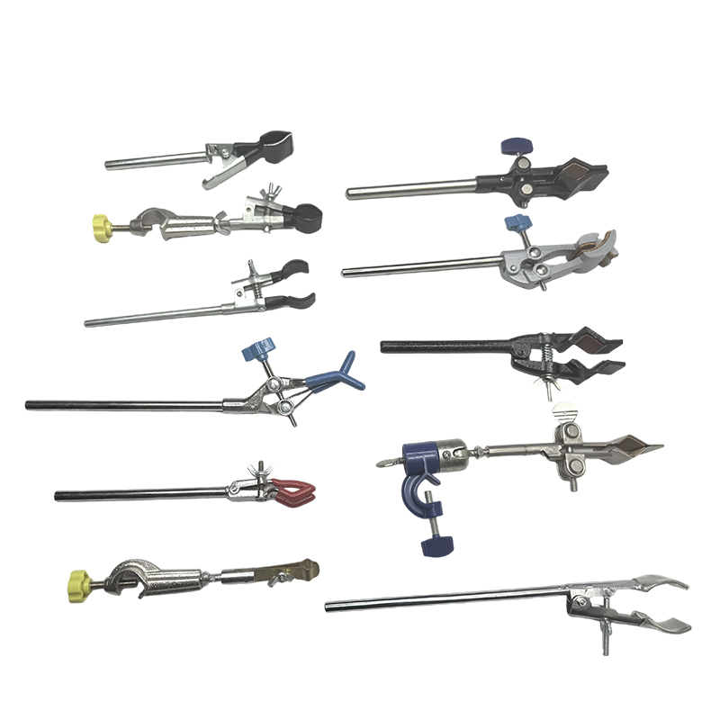 There are beaker clamps, universal clamps, three-claw clamps, four-claw clamps, cross clamps and other experimental clamps.