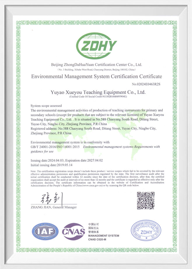 Yuyao Xueyou Teaching Instrument Co., Ltd., established in 2008, is a comprehensive enterprise specializing in the research, development, production, sales, and service of teaching instruments. The company is located in Yuyao City, Ningbo, Zhejiang Province, benefiting from an excellent geographical location and convenient transportation, which provides strong support for the company's business development.