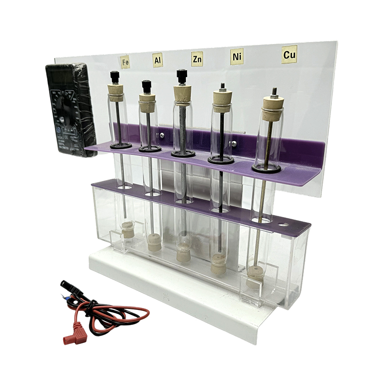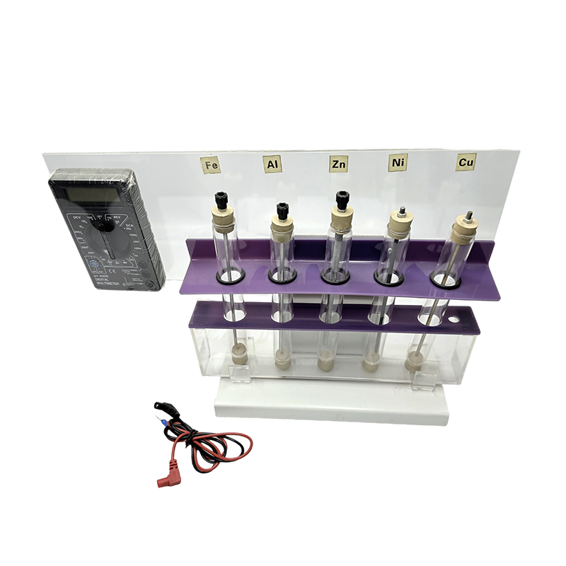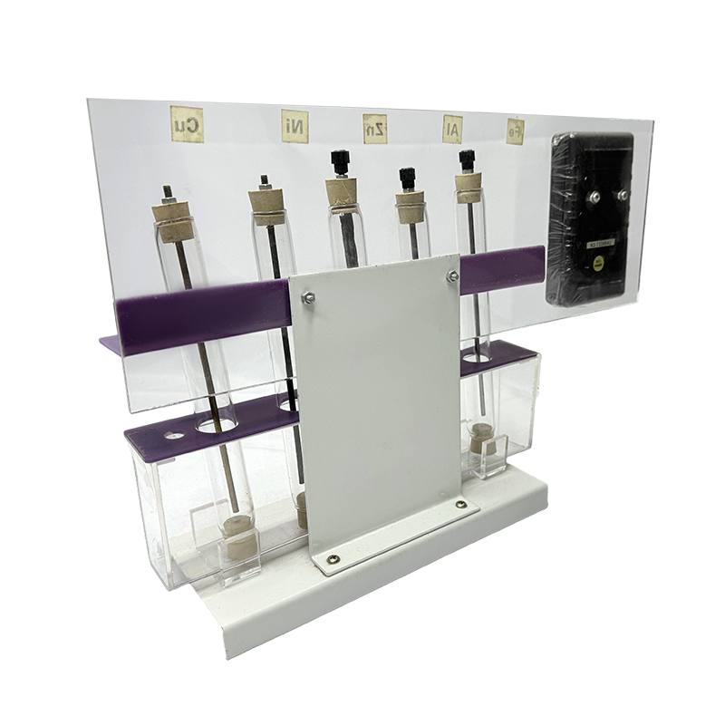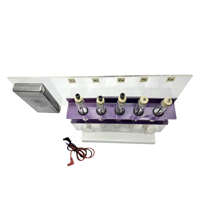 Composed of background board, base, test tube, rubber stopper, electrode, test tube rack, electric meter, etc.