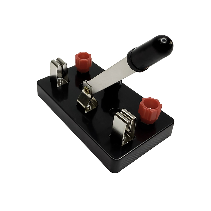 Single-pole switch, used for low-voltage DC experiments. In physical experiments, single-pole double-throw switches are often used in simple series circuits. Experimental equipment includes single-pole double-throw switches, light bulbs, power supplies, and wires. Through the practice of single-pole double-throw switches, students can not only deepen their understanding of circuit principles and the working principles of switches, but also improve their practical operation skills and enhance their thinking ability in scientific experiments.