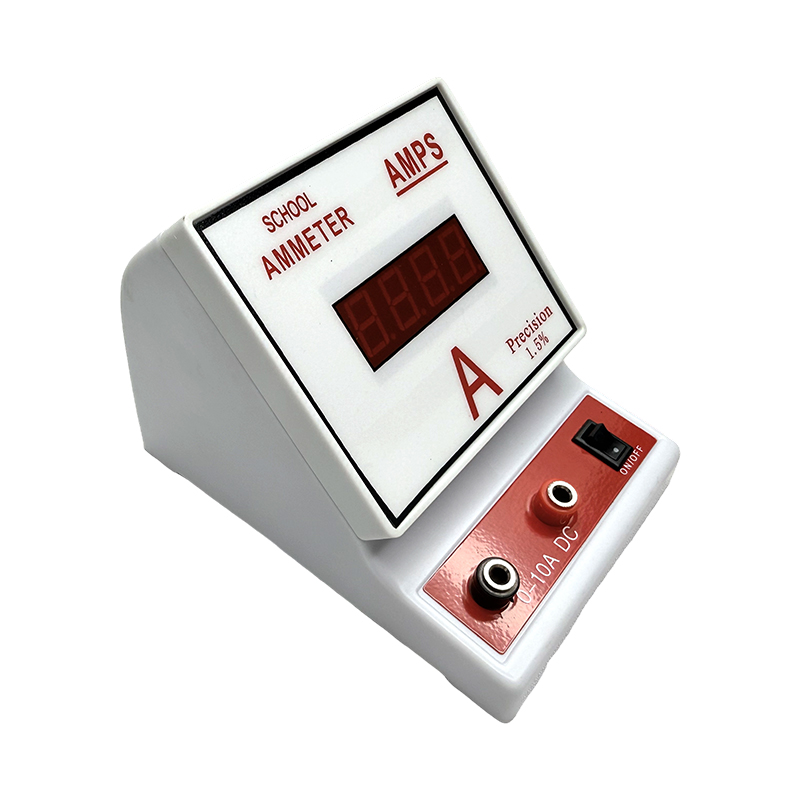 It is designed to measure the current intensity in DC and AC circuits when conducting physical and chemical demonstration experiments. When the current passes through the conductor, the mechanism inside the ammeter will capture this change and intuitively display the current size through the digital display.